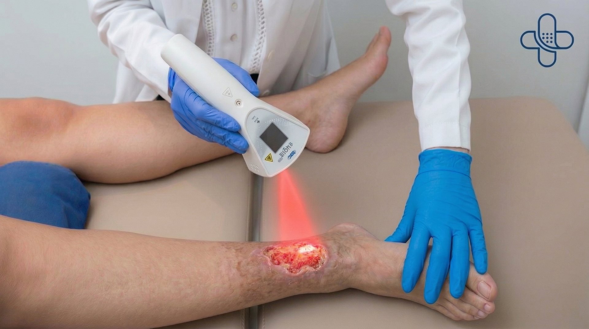 A laserterapia é uma tecnologia utilizada para estimular a cicatrização de forma segura e não invasiva. A luz terapêutica aplicada na ferida ativa as células responsáveis pela reparação do tecido, ajudando o organismo a retomar o processo natural de cicatrização.